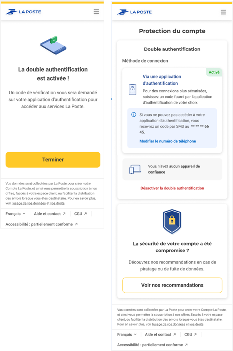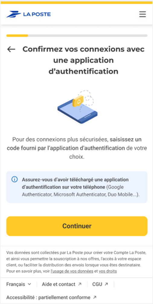 Pour sécuriser davantage l’accès à votre Compte La Poste, vous avez la possibilité d’activer un second facteur d’authentification, en complément de votre e-mail / mot de passe.