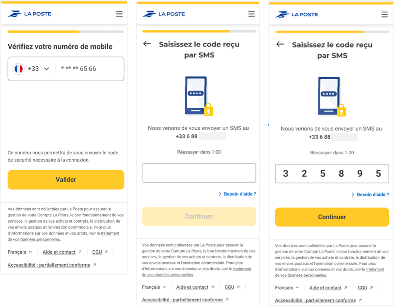 Ce système de double authentification consiste à saisir un code à usage unique pour pouvoir vous connecter avec votre Compte La Poste. Cette option, paramétrable uniquement depuis votre espace de gestion de votre Compte La Poste, sécurisera votre connexion à tous les services La Poste : laposte.fr, Digiposte, etc.