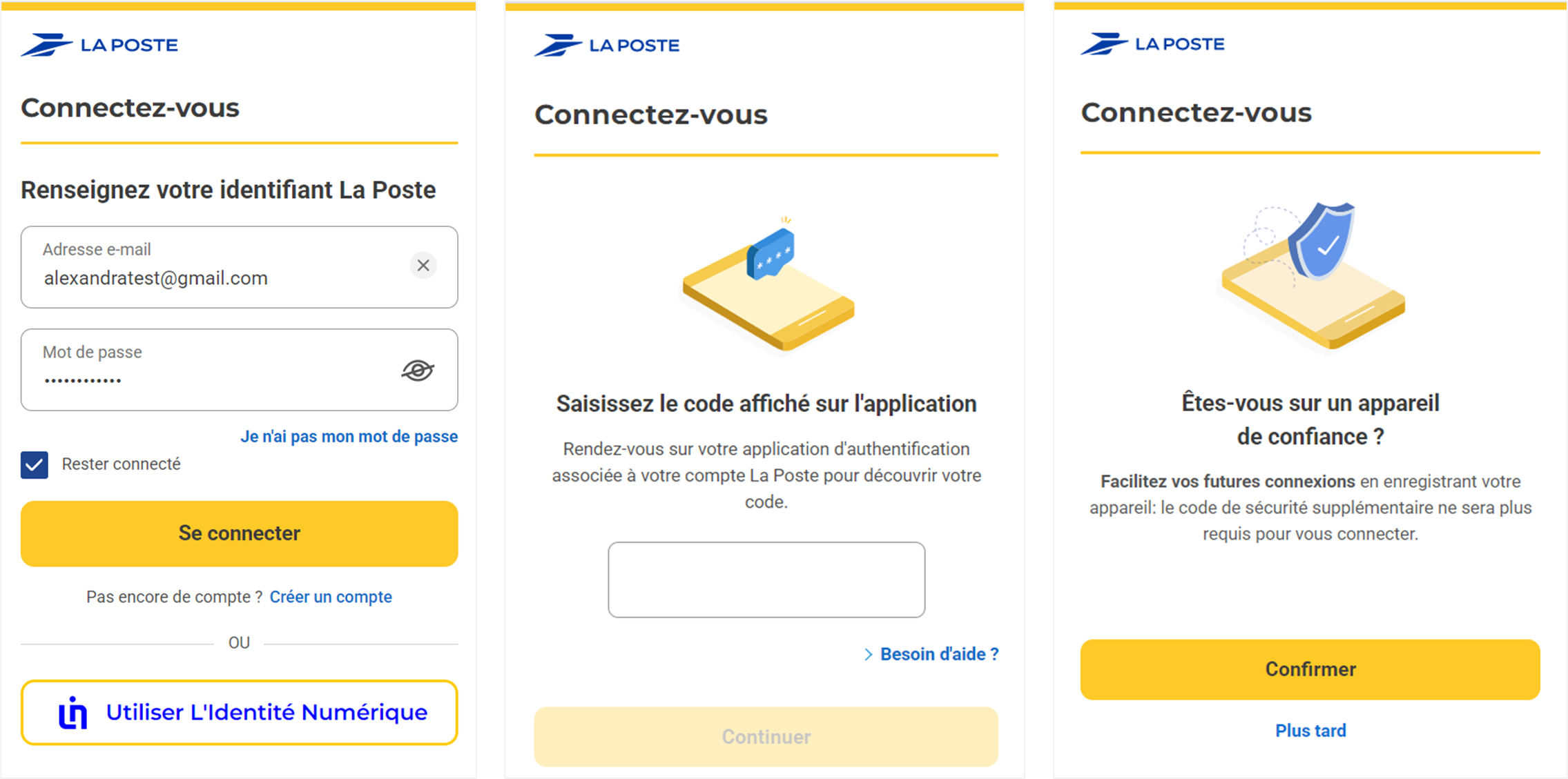 Ce système de double authentification consiste à saisir un code à usage unique pour pouvoir vous connecter avec votre Compte La Poste.