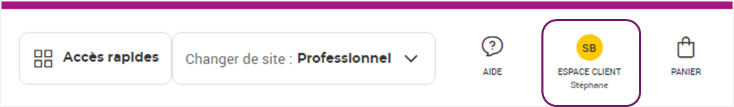- Cliquez en haut à droite sur vos initiales / Espace client dans le bandeau horizontal, puis sur « Gérer votre Compte Pro ».